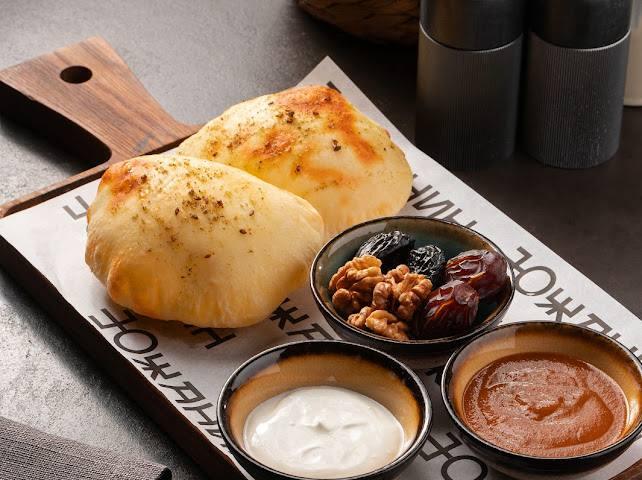 В ифтар-сете от Lali — воздушная узбекская лепешка с нежным каймаком и насыщенным сумаляком. В качестве сладких акцентов — курага, финики и хрустящая халва с грецким орехом.