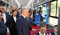 Президент Узбекистана проехал в электробусе по новой линии BRT на улице Шота Руставели 16.10 / Новости 7283