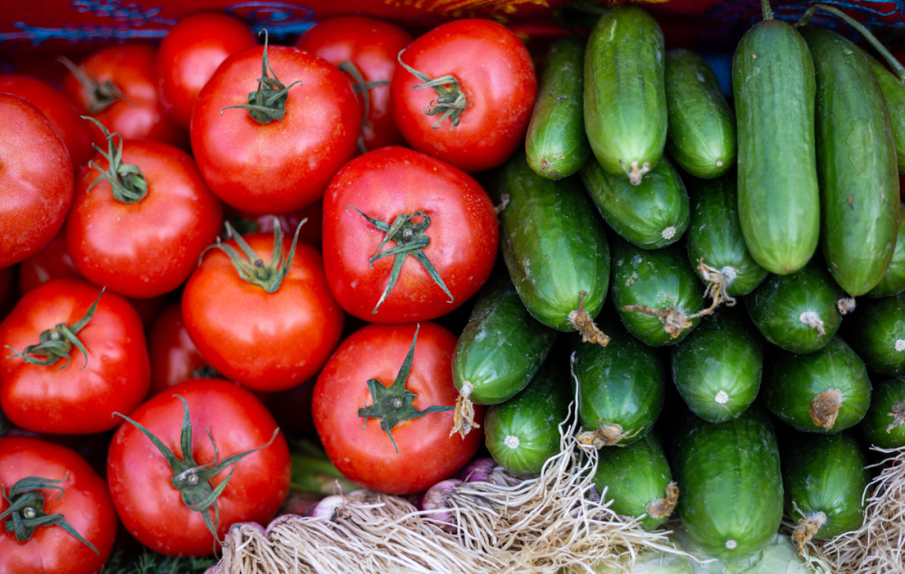 Среди овощей подорожали помидоры (+61%), огурцы (+58%) и баклажаны (+11%), тогда как капуста (-5,4%), лук (-5,3%) и картофель (-2%) подешевели.